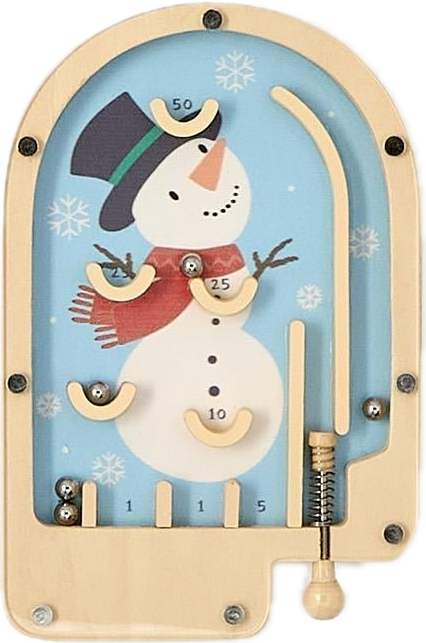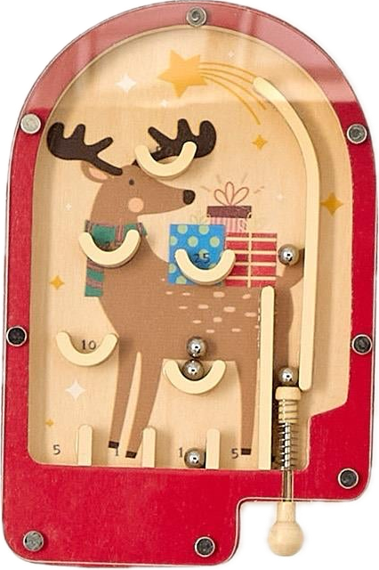 Get ready for a festive challenge with our Holiday Wooden Pinball Game. This timeless holiday game brings all the excitement of pinball to your home, with cheerful Christmas-themed graphics and easy-to-use hand held size.