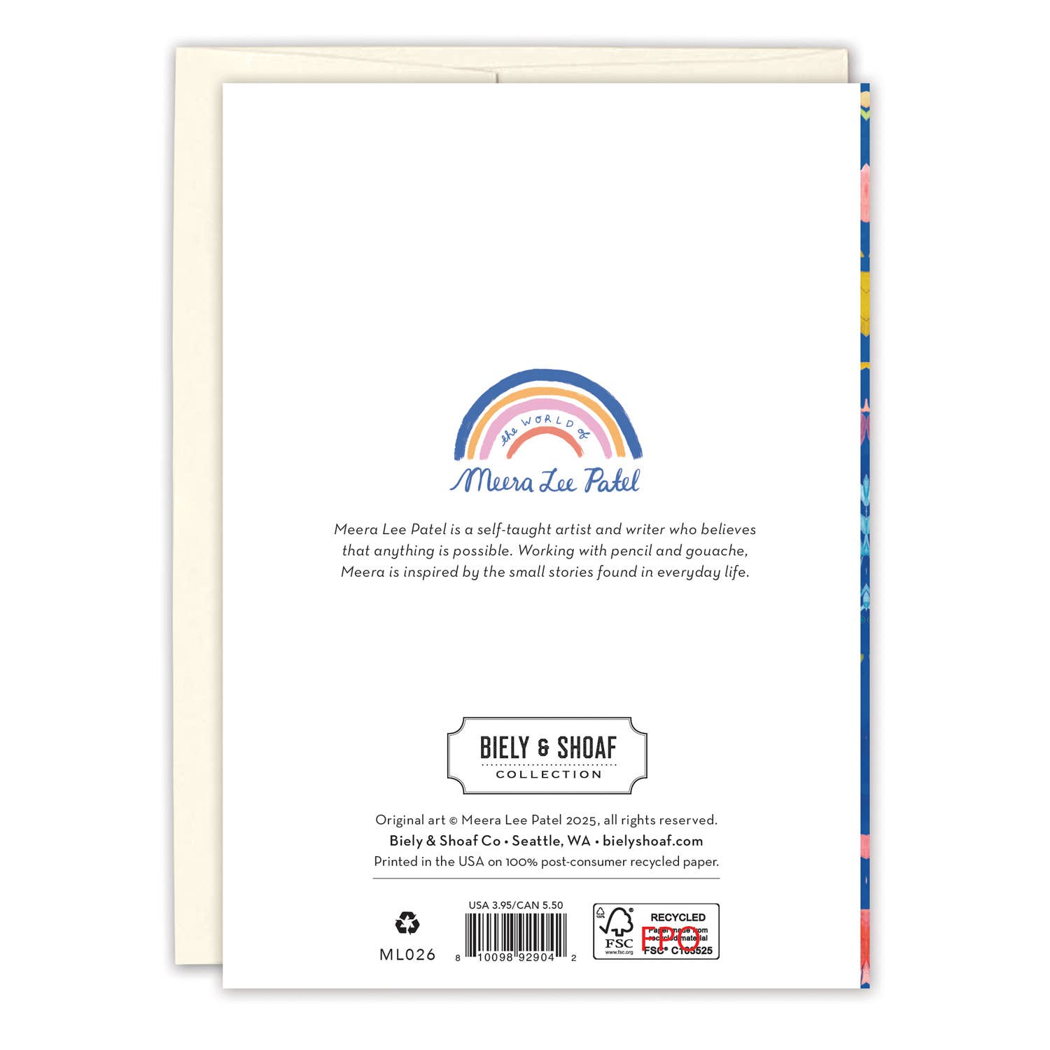 About the artist: Meera Lee Patel is a self-taught writer and artist who believes that anything is possible. She is the author of My Friend Fear: Finding Magic in the Unknown, a beautiful meditation on fear and how it can help guide us to become who we really are. She is also the author of two journals for self-exploration, Start Where You Are and Made Out of Stars. Working in pencil and gouache, Meera is inspired by the small stories found in everyday life.