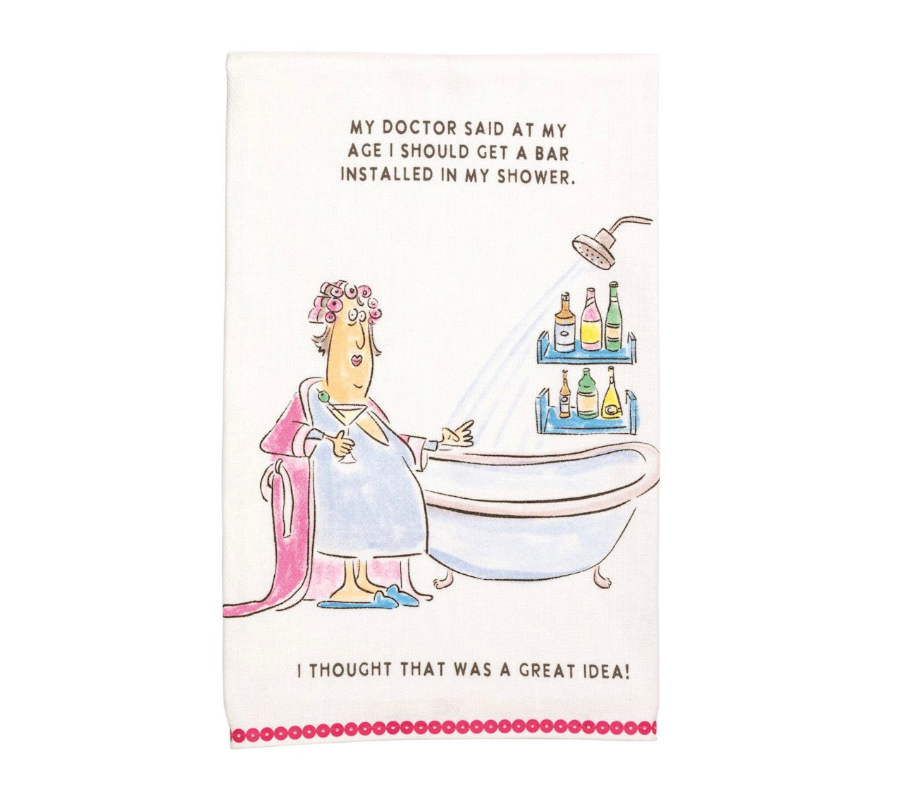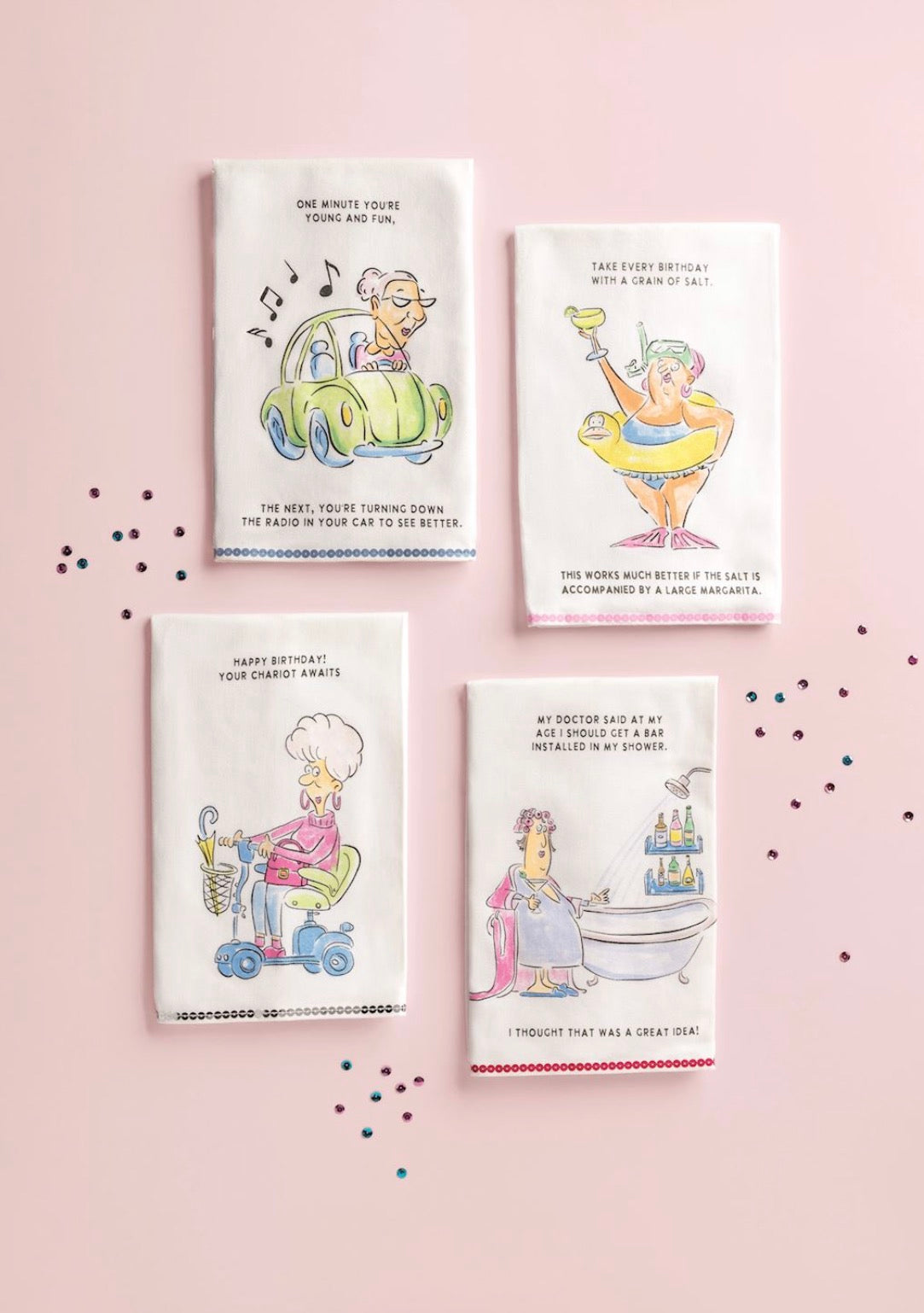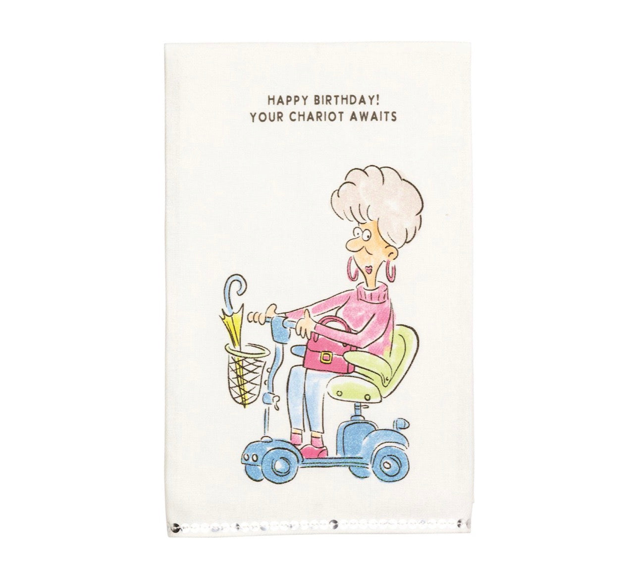 Cotton hand towel features printed art with glitter detailing and sequin trim hem.