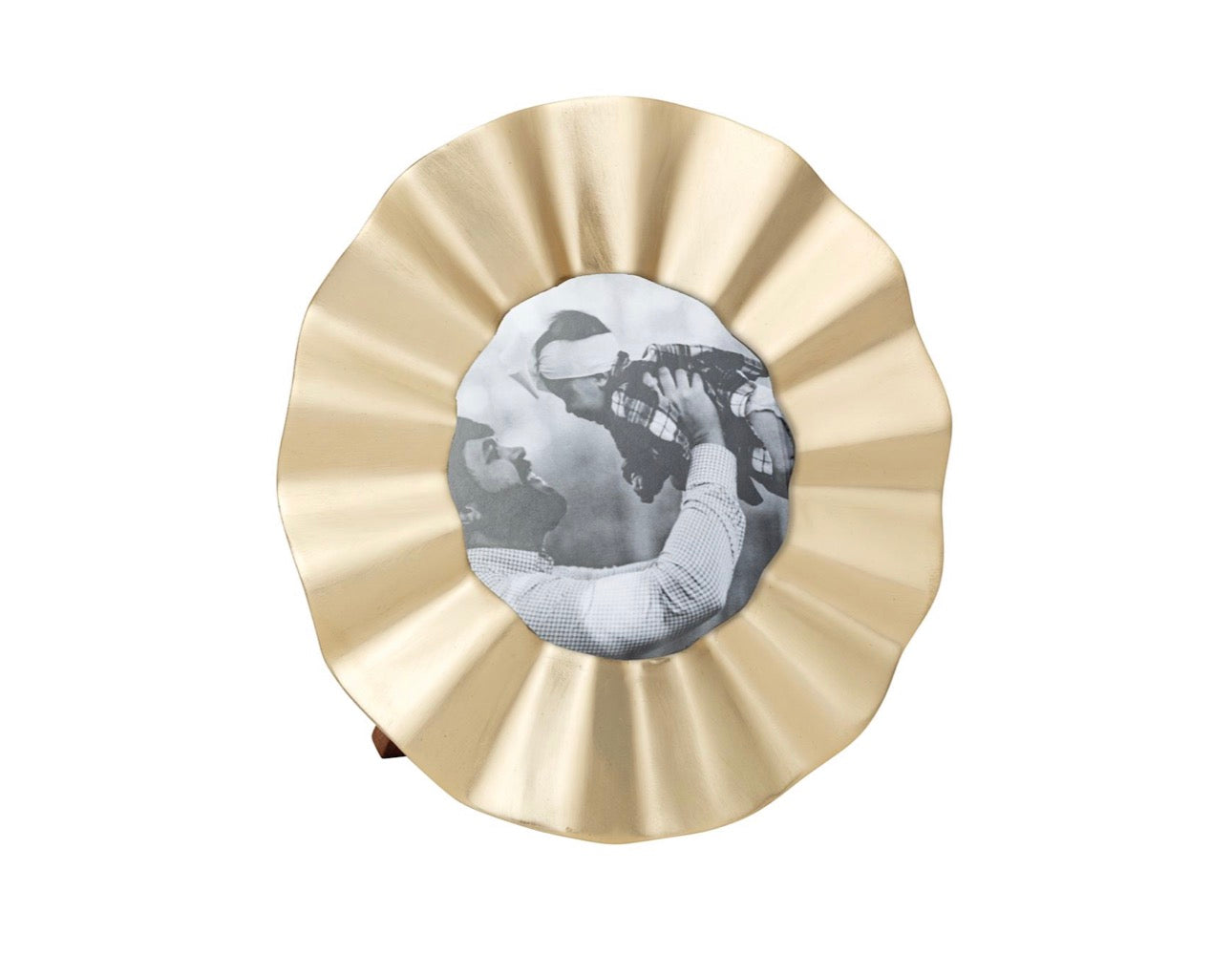 Ruffle brass finished 2 3/4" x 4" frame. Easel back.