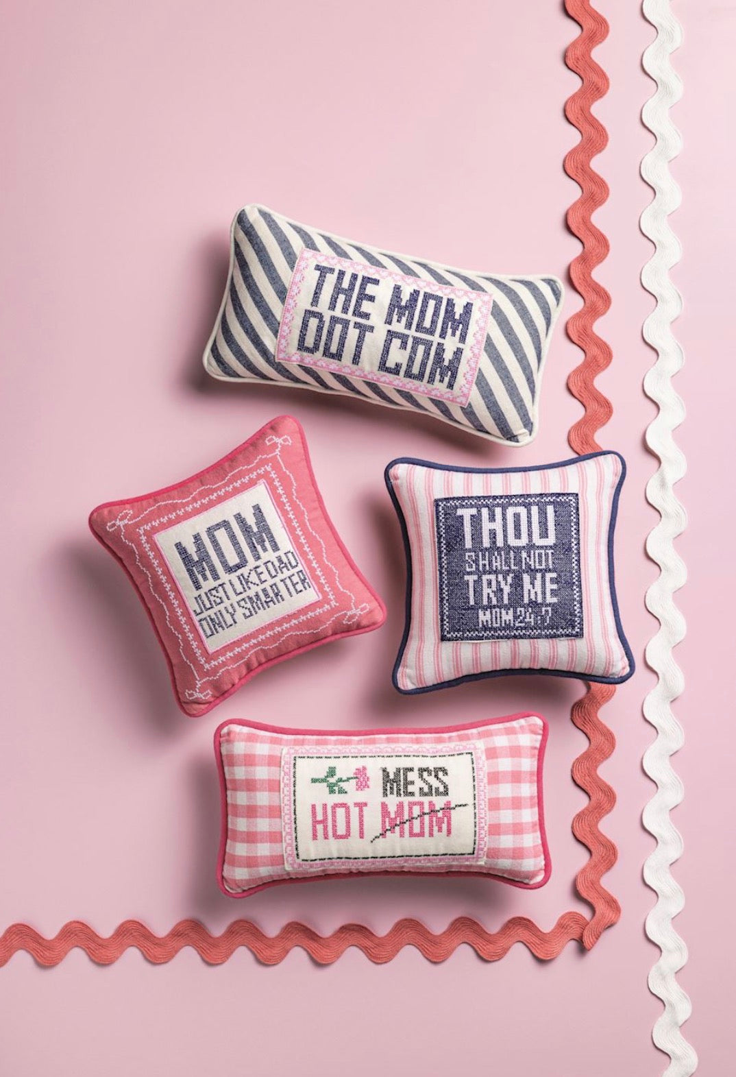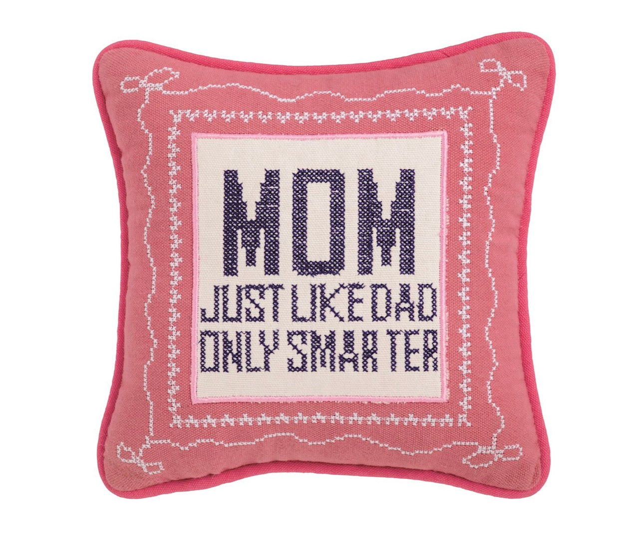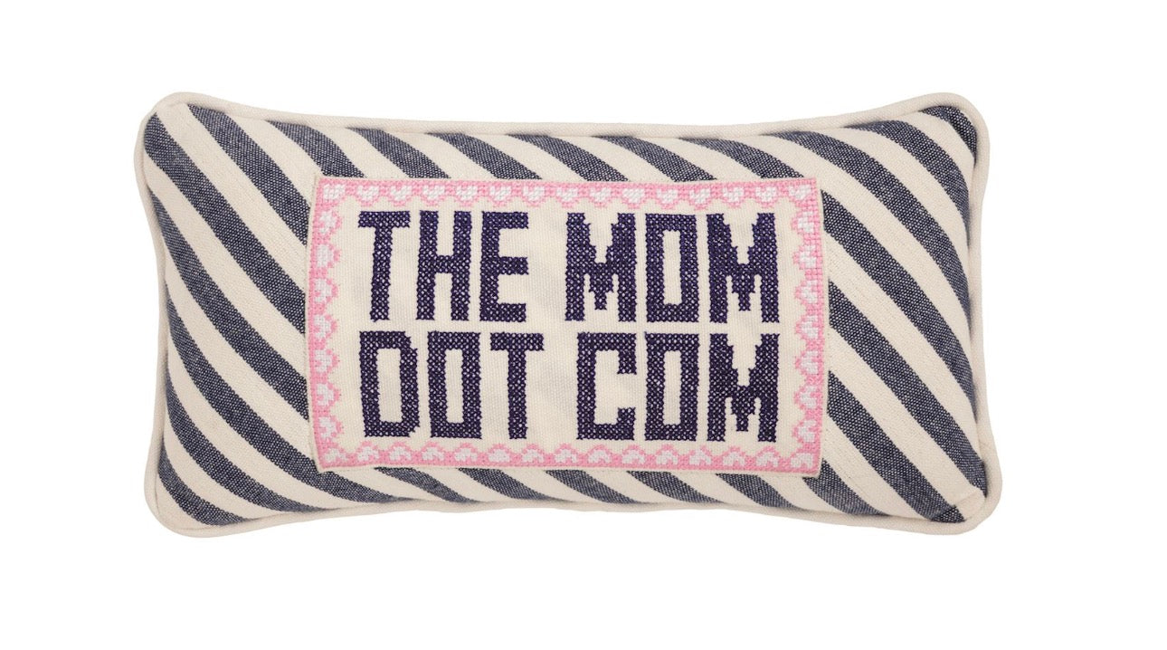 Buffalo check, French ticking or cotton pillow features needlepoint embroidery and piped edge