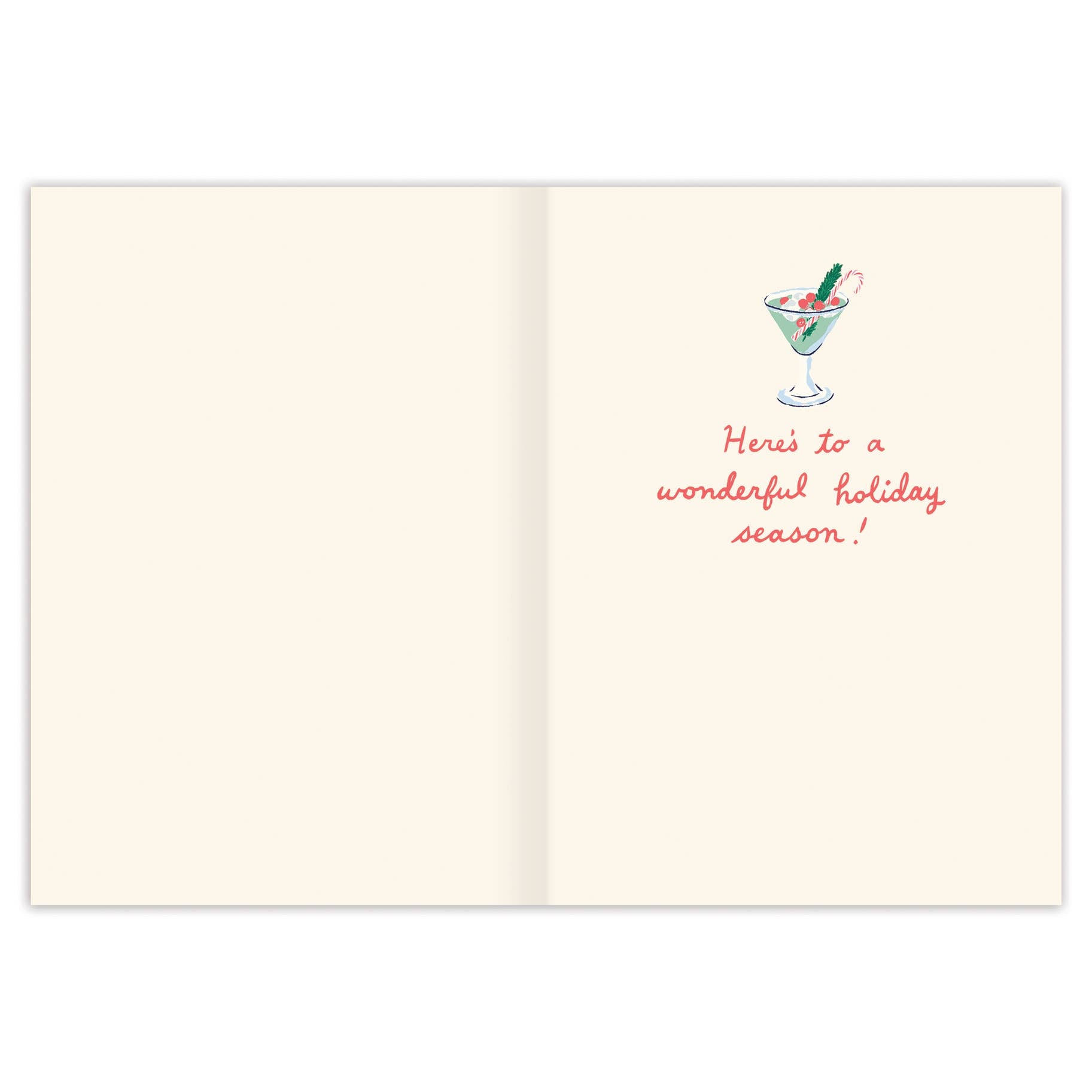 Inside verse: cheers, cin cin, salut! Here's to a wonderful holiday season