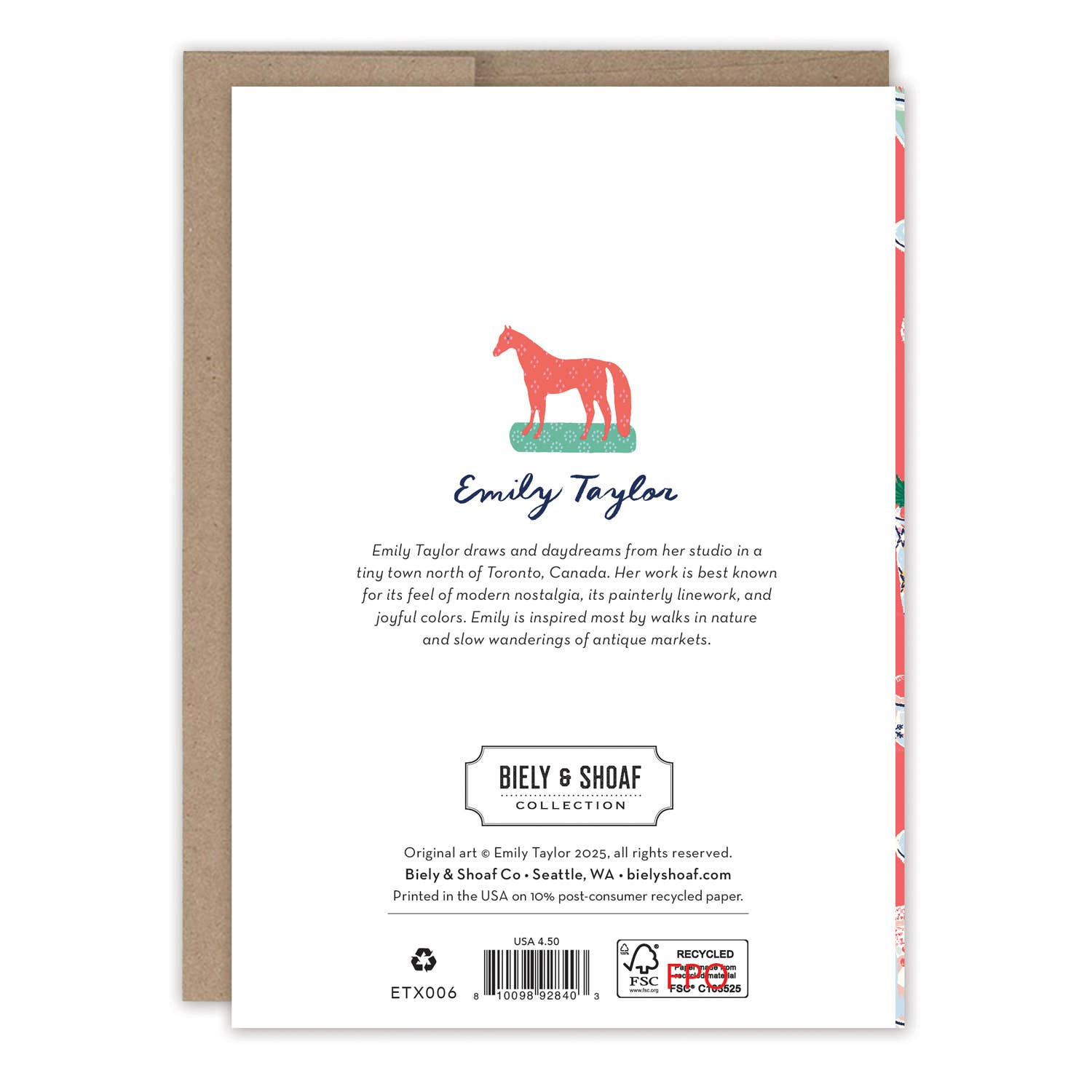 About the artist: Emily Taylor draws and daydreams from her studio in a tiny town north of Toronto, Canada. Her work is best known for its feel of modern nostalgia, its painterly linework and joyful colors. Emily is inspired most by walks in nature and slow wanderings of antique markets.